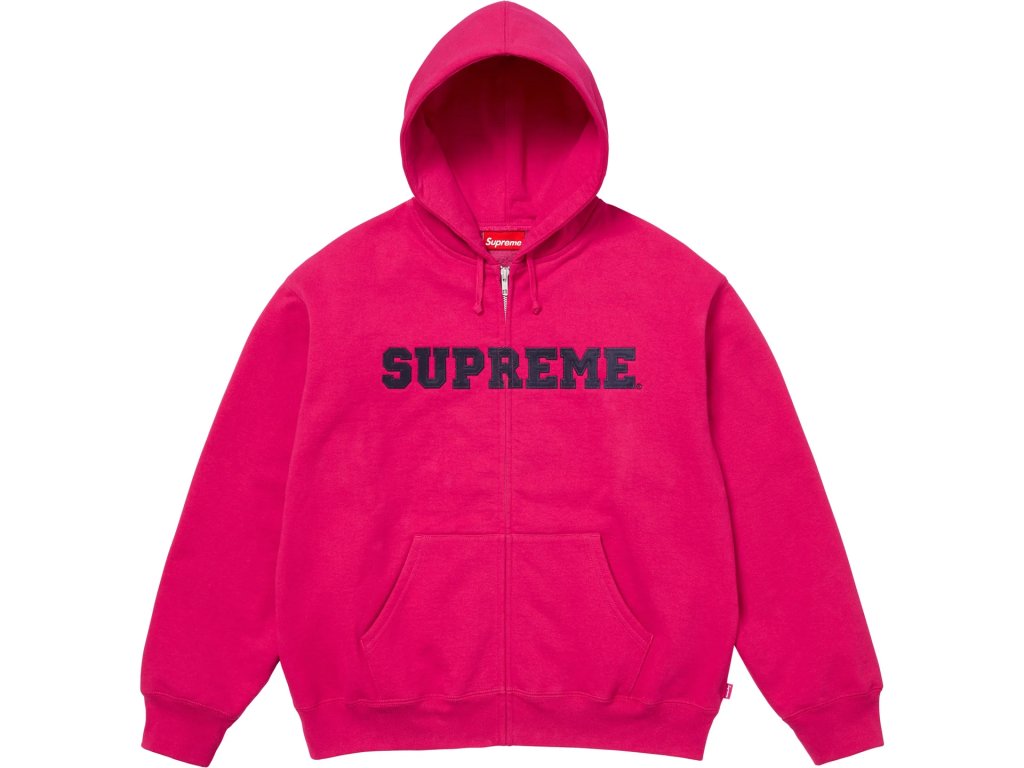 Supreme Collegiate Appliqué Zip Up Hooded Sweatshirt / Fuchsia